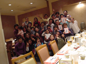| スキアシ「レディース感謝デイ」名称あらため「ファミリーパーティー」しました! 11月29日(土)、品川某ホテルのレストランでスキアシ恒例のファミリーパーティーの模様。これは日頃の釣りを支えてくれる家族やカノジョら、いわゆるヤマノカミに感謝する日ということで、スキアシ誕生当初から、忘年会もかねて毎年行われている行事で、今年は4回目にあたる。3年前のアカチャンはコトバを話すようになった。時間のたつのははやいぜ |