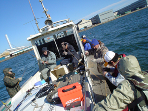 | レッドヘッダーズ小峰丸&忘年会 12月21日。かねてからお誘いのあったレッドヘッダーズの忘年会に、遠藤とひできとお邪魔してきた。日中は釣り、午後6時から宴会という毎年お決まりのスケジュール。船宿はもちろん小峰丸。千葉市内を流れる都川左岸にあるシーバスプラッギング発祥の船宿だ。 |