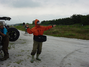 | ソルトウォータ−フライフィッシングフェスティバル vol.1 主催:S.W.F.F.F実行委員会、 スキッド&アシッド/ 後援:J.G.F.A ゲスト:世界のEIZO(丸橋英三さん)/ インスト:市川正章 ほか / 参加費:無料 6月13日(日)千葉県富津岬で第1回SWFFフェスティバルが行われた。 このイベントは数少ないSWFF(ソルト ウォータ− フライ フィッシング)のファンが気軽に集れる場をつくろうと、SWFFフェスティバル実行委員会が今年からスタートしたもの。 降ったり止んだりの雨と強い北風に悩まされながらも22名の参加者がフライロッドを振ったのだが、エキスパートたちの腕をもってしても、このコンディションはあまりにタフであった。しかし、これだけ豪華な顔ぶれであれば盛り上がらないわけはなく、 超たのしい1日であったことをまずは報告したいと思います。 |