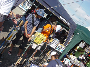 ![]() 大会基地にはメーカーアウトレットが設けられた。 今回は企画&告知の遅れもあって、少数の出店にとどまったが、掘り出し物から蔵出し、プロトまで格安セール |