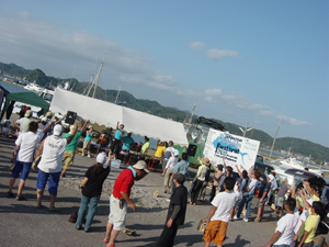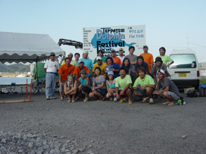 | 以下はサウスエンド発行の房日新聞等の地元媒体などへのリリース 2002年からスタートしたテッパツドルフィンフェスティバルは地元船宿活性化のため、地元釣具店とボランティアスタッフが始めたシイラ釣りの大会です。房州弁の「てっぱつ」を大会名に織り込み参加者は関東近県から熱狂的なファンが駆けつける大会です。シイラ釣りは若者に人気のあるルアーフィッシングの対象魚であり、引きが強くジャンプを連発し大きいものは1m50cm近くのものが近海で釣れる。 3回目である今回は20年来の大きなシイラの釣れる年であり、今年の夏に自己レコードを塗り替えた釣り人も多くいたそうです,また多くの釣り人は釣りのターゲットである魚を大事にしたいと考え、バッグリミット(持ち帰り自主規制)を実行している。 ●リザルト(魚の大きさは又長) 優勝:岸正道(111cm)宝生丸/近田憲男(111cm)第3共栄丸・・・同寸(優勝者2名) 2位:金刺周作(98.5cm) 村井丸/3位:高橋 敦(93cm)宝生丸/レディース特別賞:近藤時子(34cm) 宝生丸 |