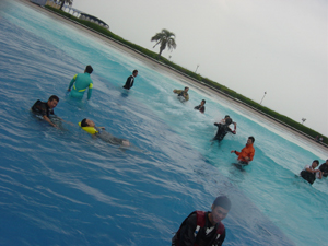 | ウェーディングレスキュー湘南 2004 vol.2 9月23日、暑さの残る秋分の日。大磯ロングビーチのプールを利用して、ウェーディングレスキューが開催された。 昨年、仲間の事故をきっかけにスタートしたこのイベントは、体験を通して安全装備の確認と危機管理を学ぼうというもので、この趣旨にスキアシは今年も賛同。 造波プールを使っての水中での転倒、落水の実体験はとってもリアル。救急救命士による救急救命術講習も行われ、初体験の人はドキドキの、経験者はあらたな試みを、それぞれの体験を深めたのだった。 主催:synchro 後援:大磯ロングビーチホテル、大磯町消防署、JGFA |