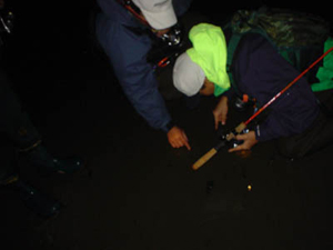 ![]() ![]() 好奇心旺盛なスキアシメンバー、ウェーディングしてるときに足元で光る物体が気になってしょうがない。その正体を確かめずにはいられないのだ! んでもって、ついに正体をつかんだのがこれ。 協議の結果、「ウミホタルじゃねえの」ってことになった(アヤシイ)。 だれか知ってたら教えてね。とりあえず、光る正体をキャッチした時点で、三宅代表は仕事場へさよなら。 おーい、釣りはどうした。 |