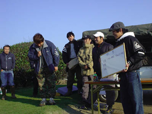 ![]() 表彰式でなぜか、謝るふらわースーさん。 対象サイズの70cm超えを唯一キャッチしてなんと一人勝ちの堂々優勝、72cmでした。 先月の湘南ドルフィンで同じくスキアシ神奈川の田中に続く快挙となった。しかも田中のシイラより10cm以上でかいのだ(笑) ライブ検量を基本とする本大会、トライしてくれたアングラーもいましたが、なかなかうまくいかない様子でした。 主催者の意図としては、タグリリのデモなどを多くの参加者に見せたかったようだが、2kg以上あるサカナを釣った場所から検量場所まで活かして持ち込むのはかなりの設備とノウハウが必要と思われます。 オールリリースで楽しむことも主催者は歓迎しているので、楽しみ方の自由度がある大会でした。 毎回、対象サイズをゲットする参加者が1名しかいないというジンクスができしまったため、70cm以上の対象サイズを次回から65cmに引き下げることを宣言してしまいました。 個人的には、70cmのままでも構わないと思うのだが、入賞者が少ないというのはやはりさみしいのかな。 久しぶりのオールナイトで明け方はふらふら&爆睡。でもたまにはみんなで並んで釣りするのって楽しいよね。(東京 山口) キングオブフラット http://www.flat-field.com/event/kingflat2004-o.htm |