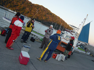 ![]() 0700出船予定にもかかわらず遅刻者が続出。朝っぱらからヤレヤレ |