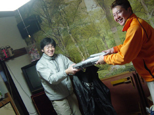 ![]() 遅刻の金子。大物賞でDVDプレイヤーをゲット! |