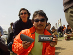 | King of the Flat vol.7 第1回大会以来、ず〜っと天気にタタられつづけていたこの大会にも、ようやく春の日差しが!? 4月24日(日)。首都圏エリアで人気、実績ともトップクラスの富津岬を舞台に88名のシーバスマンを集めて晴ればれしく開催された。 天気はかつてない好天!だがしかし、サカナが出ない・・・。地元のオッチャンによれば、今日の海はサイテーなのだそうだ。 ま、そんなことには慣れているのだが、やっぱりスズキは最後まで出なかった。 スキアシからは山さん、テル、ひでき、金子、おれ、前回優勝者のよしゆき(おれが場所を譲って、テルがランディングしてあげた)が参加した。 KING of the FLAT |