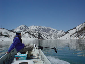 | 山口組長からレポ到着! 2005年 銀山レポート Photo&Text 東京 山口 こんばんわ、銀山レポート送ります。 5月3〜4日、恒例の銀山ツアーに行ってきました。 毎年、満水だったため、今回は少し早めの日程で減水の銀山湖(奥只見ダム)を楽しもうとしましたが、なんと19年ぶりの大雪のため、例年以上の残雪で、様々な変化がありました。こんな世界なんだなぁと感じていただければと思います。 |