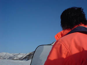 ![]() 「帰りは歩き」と思っていたところに、おじさんが「モービル乗れるかい?」 「はい、オッケーです」ってことで借りちゃった。 楽ちん&すっげー楽しい! |