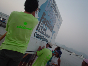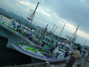 ![]() 大型の台風11号の動きにヒヤヒヤしたけど、なんとかクリア。前日の夕方。港内で準備はすすむ |