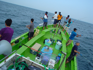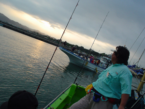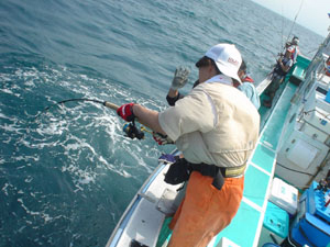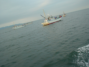![]() 本部船で大漁旗が振られ、0600スタートフィッシング! |