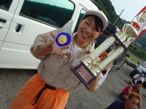 ![]() そんなこんなで意外と出ないナイスサイズ。なんとエントリーの半数は女性アングラー!。ゆっくりの深めがキーワードだったか? で、優勝はおなじみレッドヘッダーズのヒロコ姉。(村井丸2号艇)77cm(だったっけ?)をエントリーでレディス賞とダブル受賞!おめでとうございます! JGFAライトタックルサーキットのポイントも獲得。総合争いに加わるコトに・・・ |