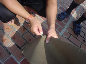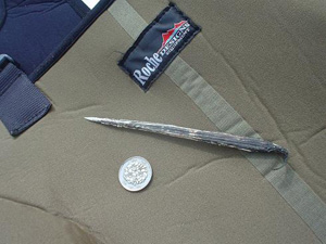 ![]() ためしにネオプレンのウェーダーに刺してみたが驚くほどあっさりと貫通。 |