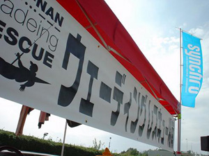 ![]() 船から落水者に投げ渡された場合。投げる人は、ジャケットのファスナーを閉めた状態の方が投げやすいし遠くに飛ばせる。落ちた人は、無理に着用しようとするとパニックになる。つかまっているだけでも何とか浮いていられるので覚えておこう。 |