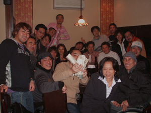 ![]() 三田の秘密基地で二次会 フラットフィールド平田代表(2005ライトタックルサーキット5位入賞!おめでとう)、新婚の志波洲庵横山代表&ゆみ姐、プラグス角田さん、あけみ姐も混入してさわぐさわぐ |